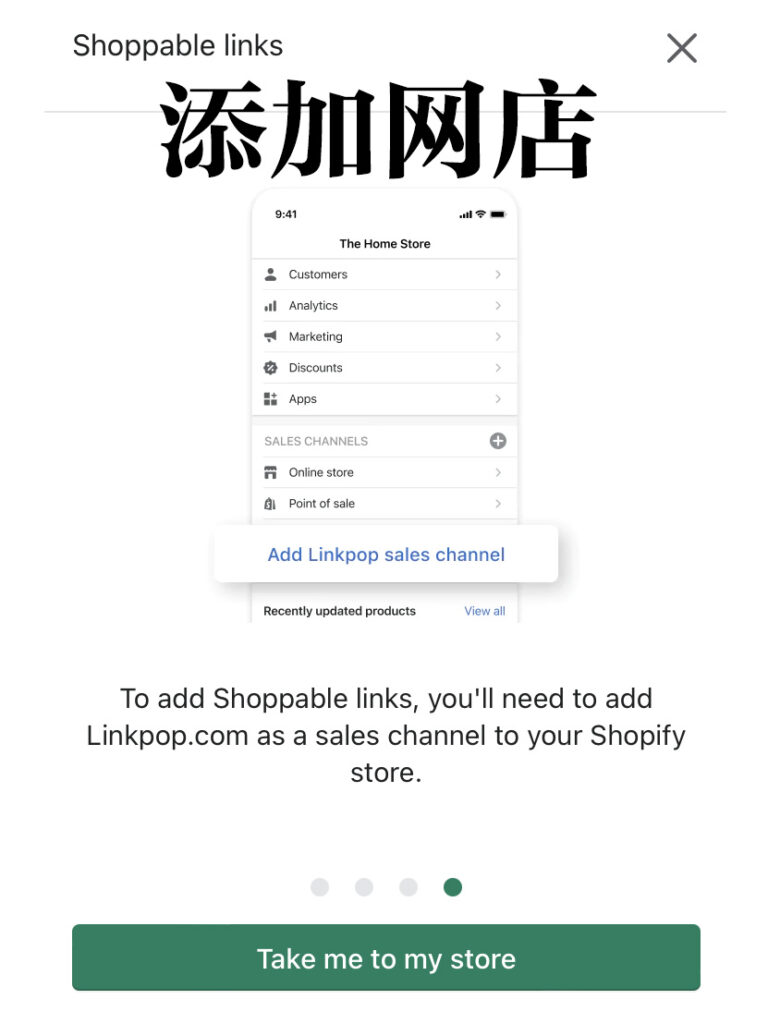 如果你有Shopify网店,在Linkpop后台添加网店网址,转到网店后台,把其加为一个销售渠道,这样就能把产品目录自动同步,访问者购物前所需的所有详细信息都能直接显示。